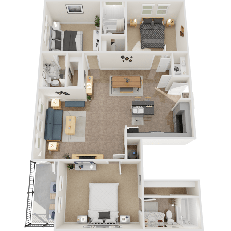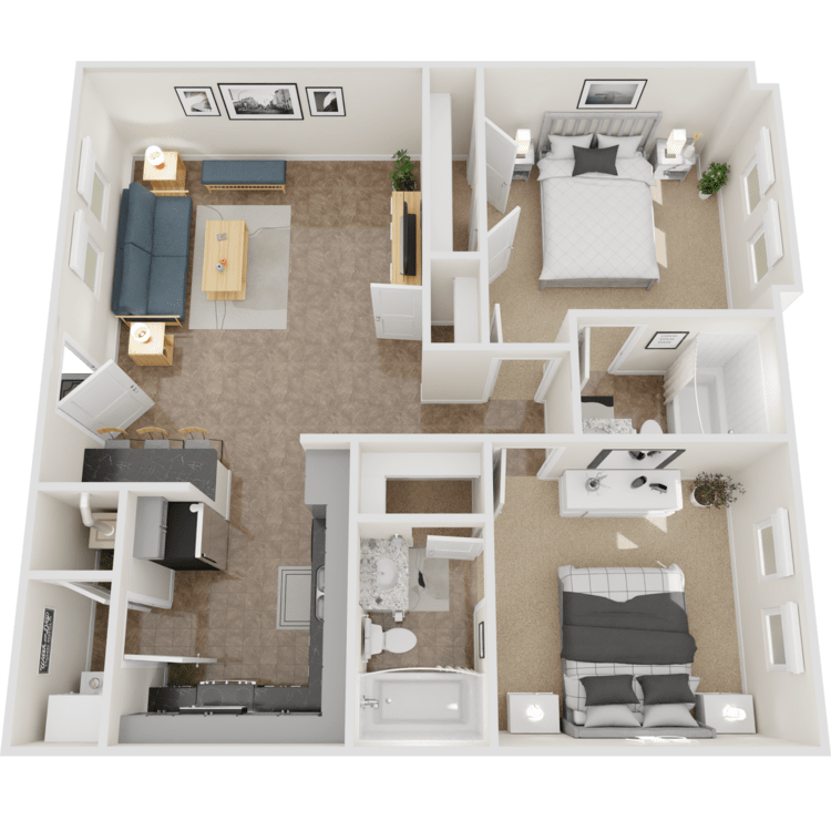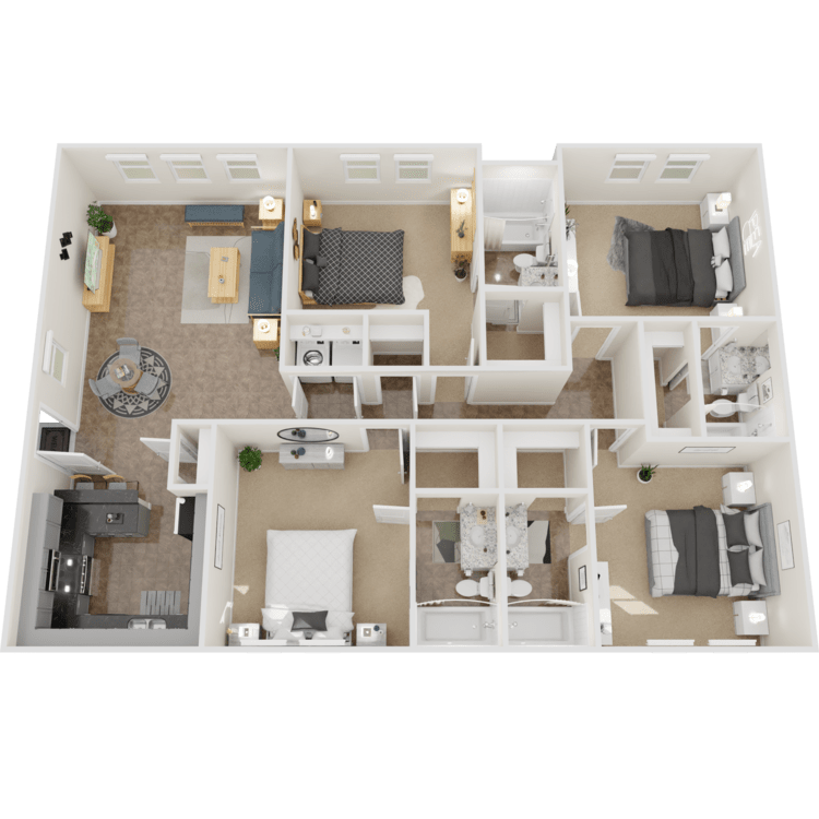 Choose from our pet-friendly, furnished two-, three-, and four-bedroom apartments for rent, designed with features like granite countertops, 9-foot ceilings, dishwashers, and in-unit washers and dryers to make everyday living simple and comfortable.